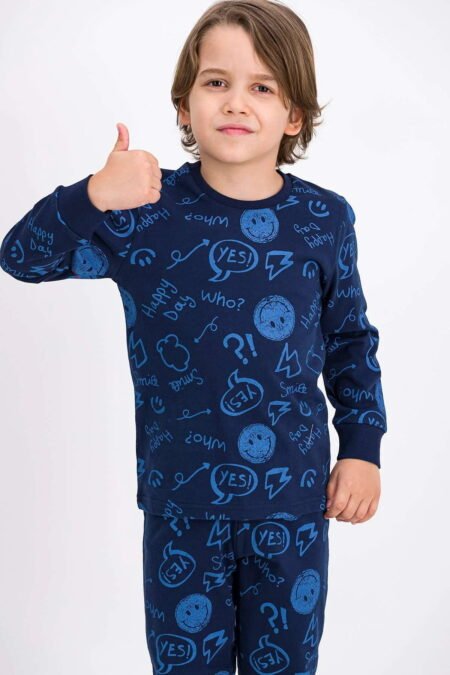 Пижама тёмно-синего цвета из очень эластичного материала, имеет прекрасную текстуру, облегает и растягивается, пропускает воздух. Рукава и штанины на манжетах.