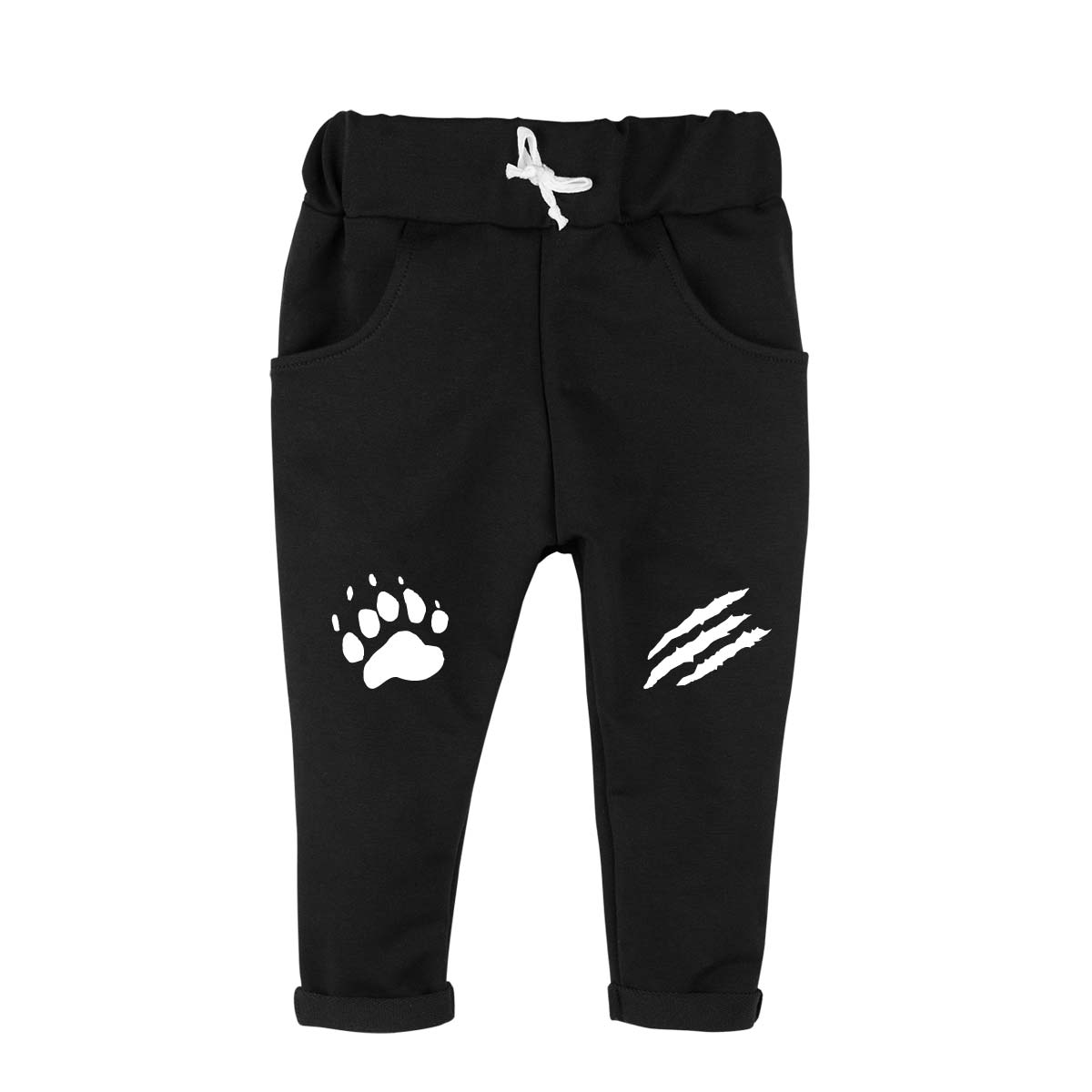 В состав входит хлопок, впереди на штанинах вышит рисунок, эластичный пояс