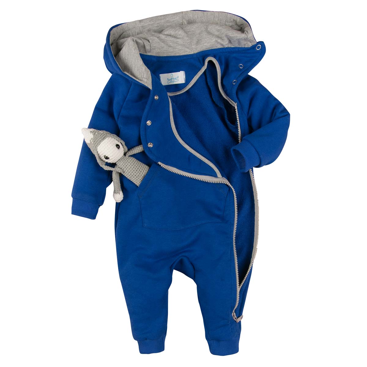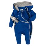 Feature: there is a hood, side buttons, rivets and zipper, pocket on tummy, elastic cuffs[:]