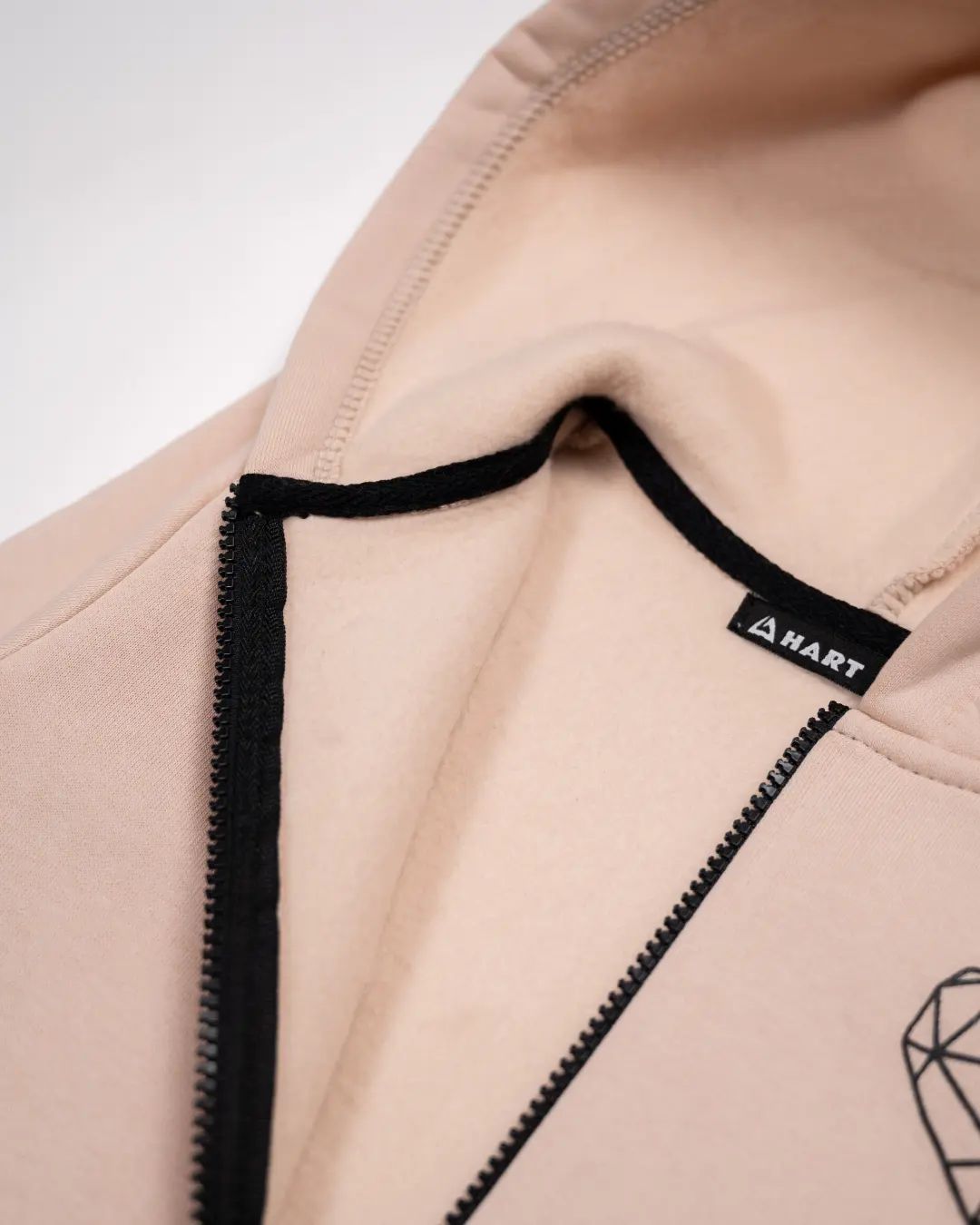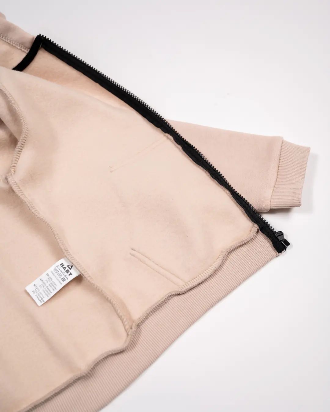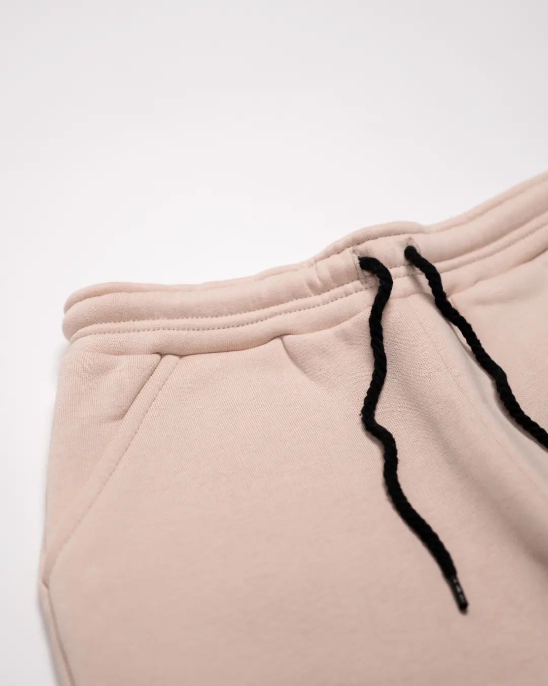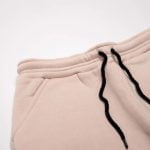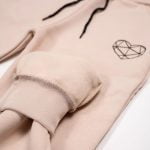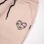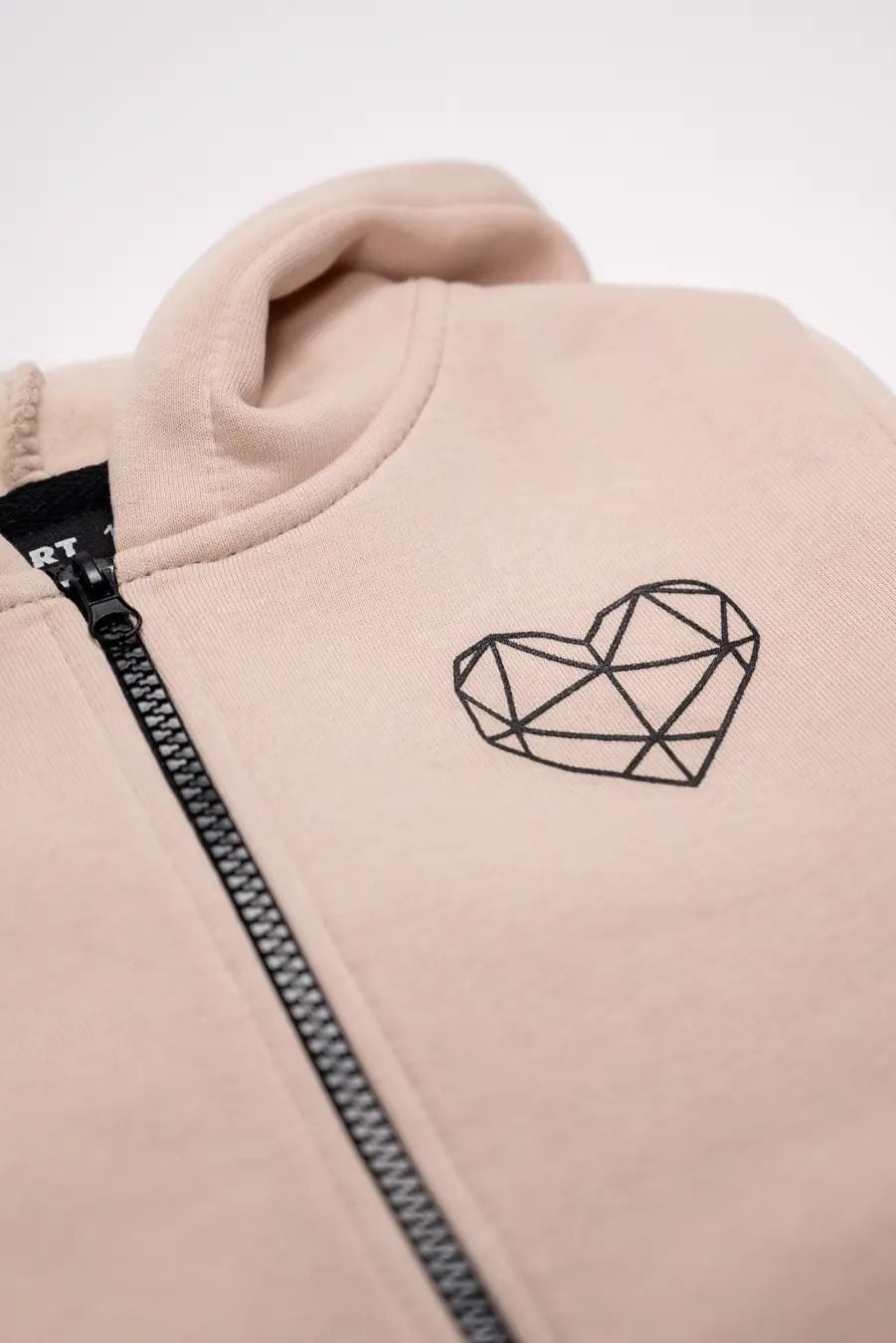 Тёплый спортивный костюм для девочки бежевого цвета с декоративной печатью на кофте и штанах.