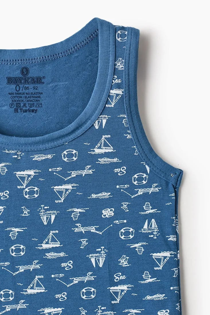 Теплий темно-синій костюм на байку для хлопчика з декоративним принтом білого кольору.